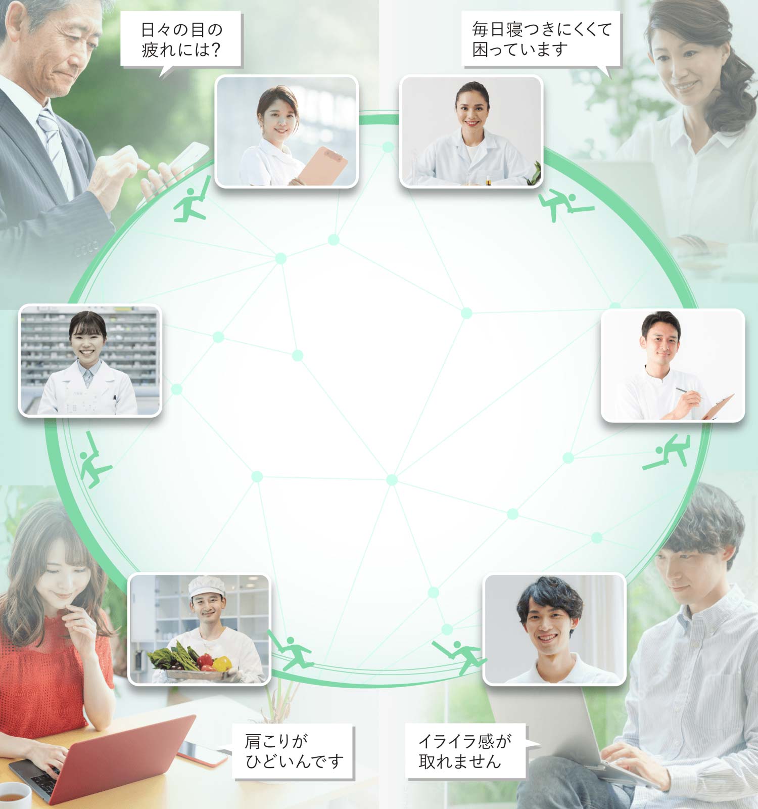 企業の福利厚生として、医療をはじめとする国家資格をお持ちの有資格者が、従業員の健康相談にリレー形式で回答します。婦人科に強い薬剤師や、感染症に強い看護師など認定や専門スキルをお持ちの医療の国家資格者を専門領域にあわせて都度選び相談できます。
